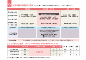 年末年始の診療のご案内
