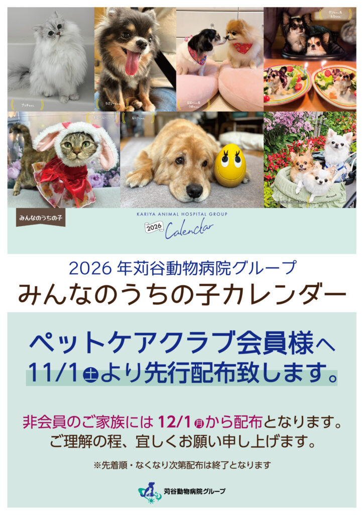 苅谷動物病院グループカレンダー配布開始2025.11.04