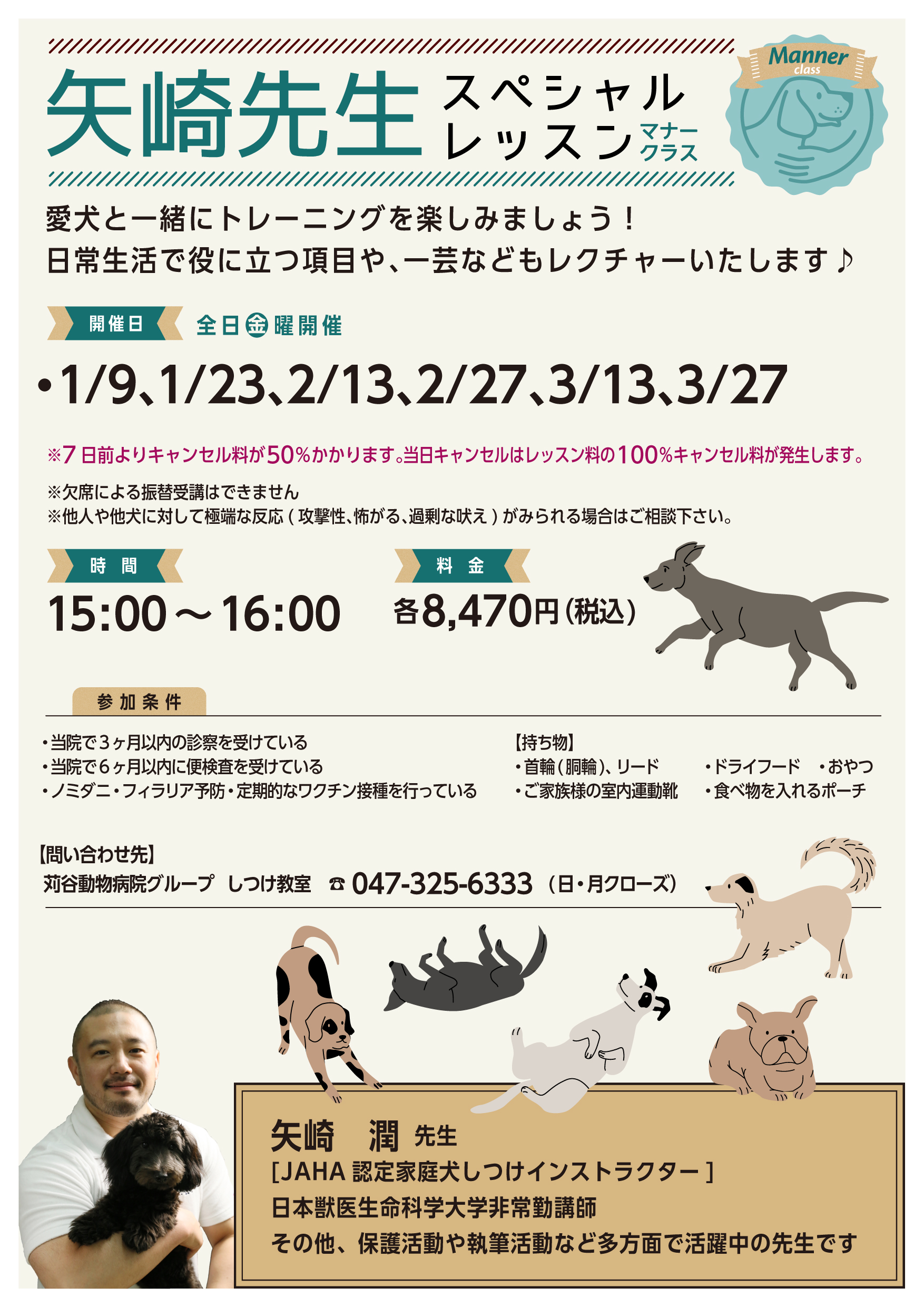 矢崎潤先生によるしつけ教室スペシャルレッスン「マナークラス」を開催します